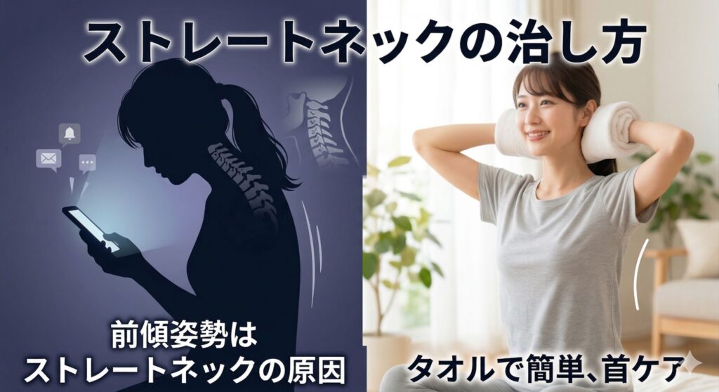 対策としてバスタオルで作る枕も有効ですが、まずは日中の姿勢を見直すことが重要です。