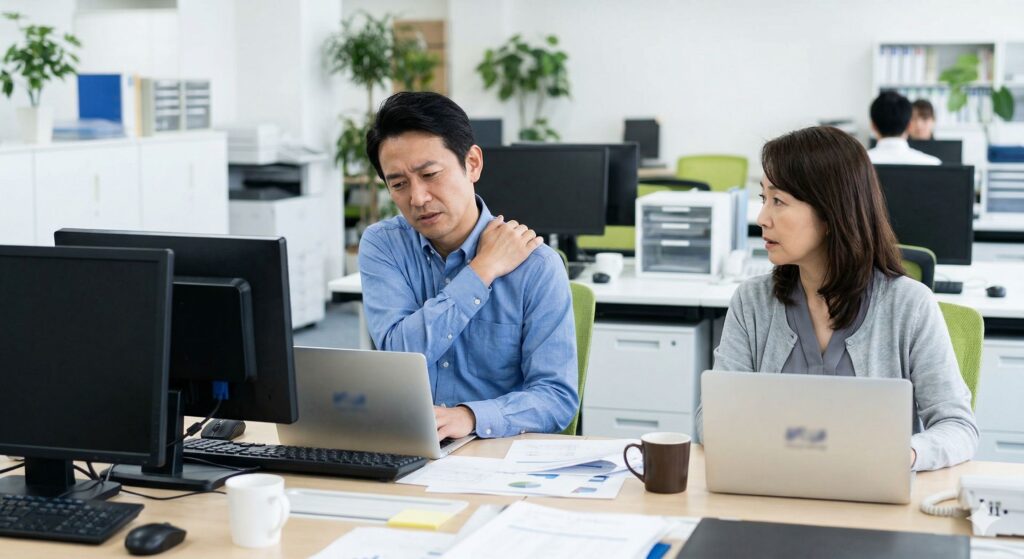 長時間のデスクワークによる肩への継続的な負担